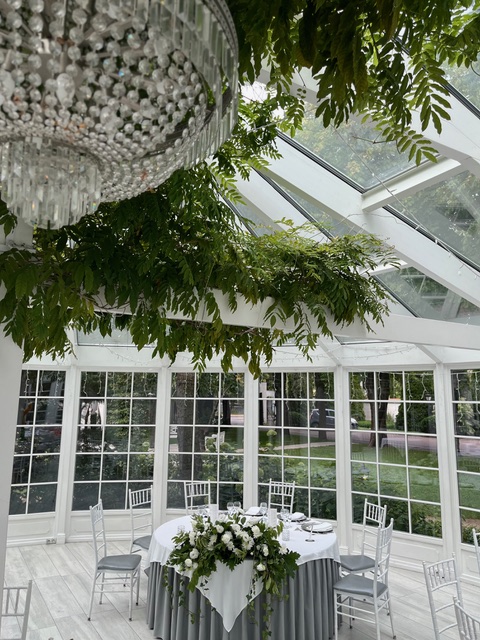 - Wiszące instalacje florystyczne (np. kwiatowe żyrandole)